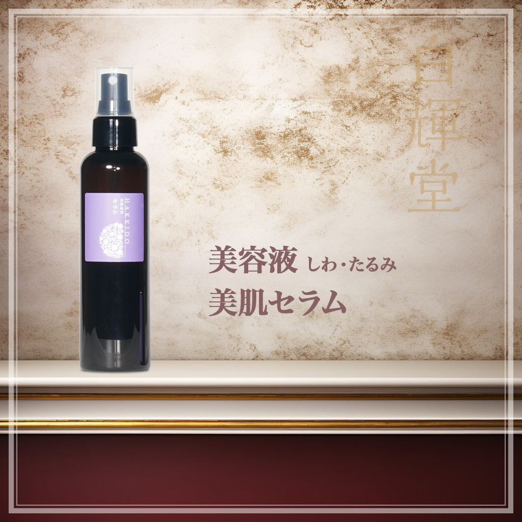 美肌セラムはエイジングケアに特化した美容液です。肌の弾力やハリを高め、目元のシワ・クマ、首元のしわやたるみ、ほうれい線など、年齢サインに幅広くアプローチします。ナノキューブ状の有効成分促進剤を配合し、しっかりと潤いを与えながらもべたつかず、素早く美肌へと導きます。